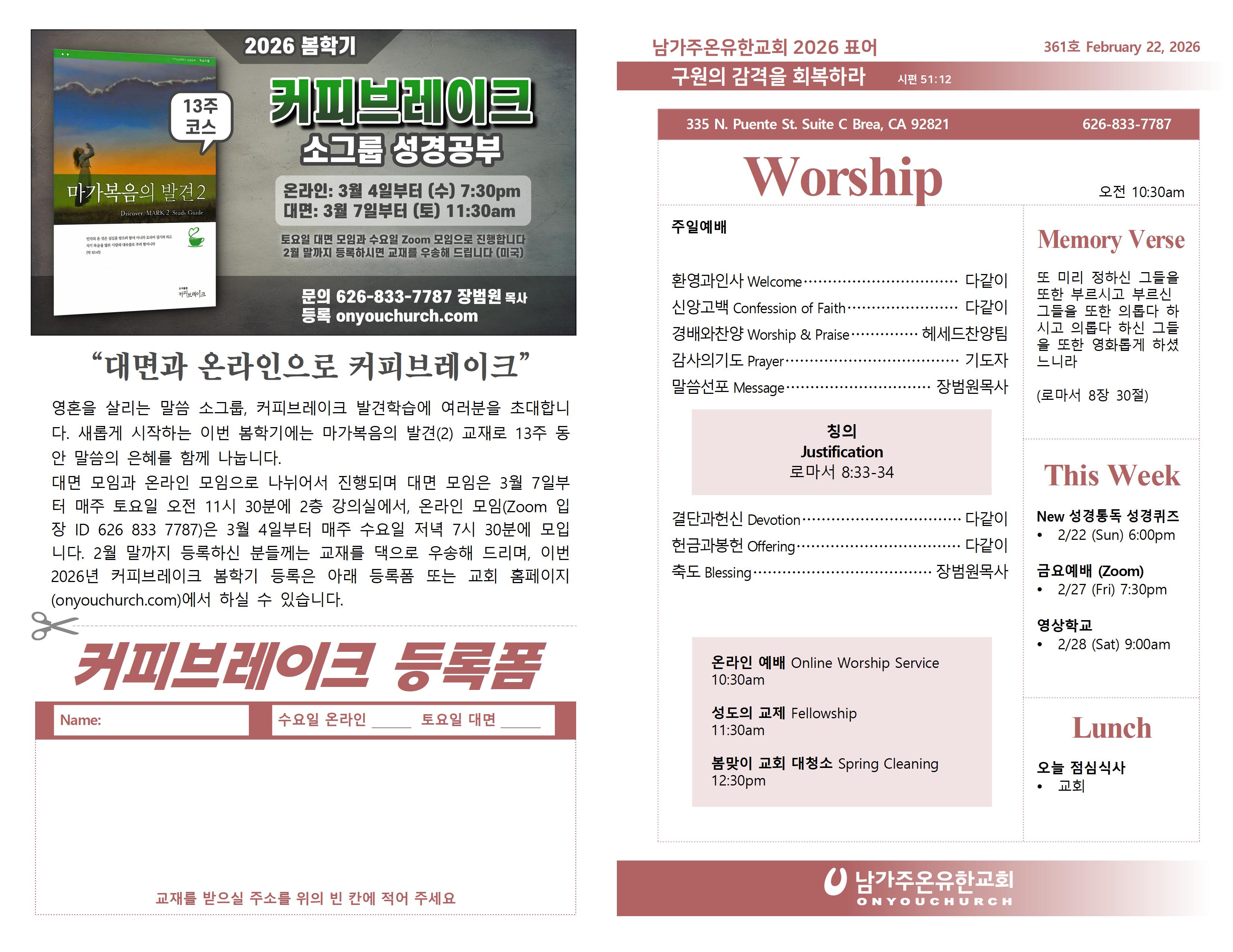 ◼ 3월 4일 수요일 저녁 7시 30분에는 커피브레이크 봄학기 첫 모임이 있습니다.