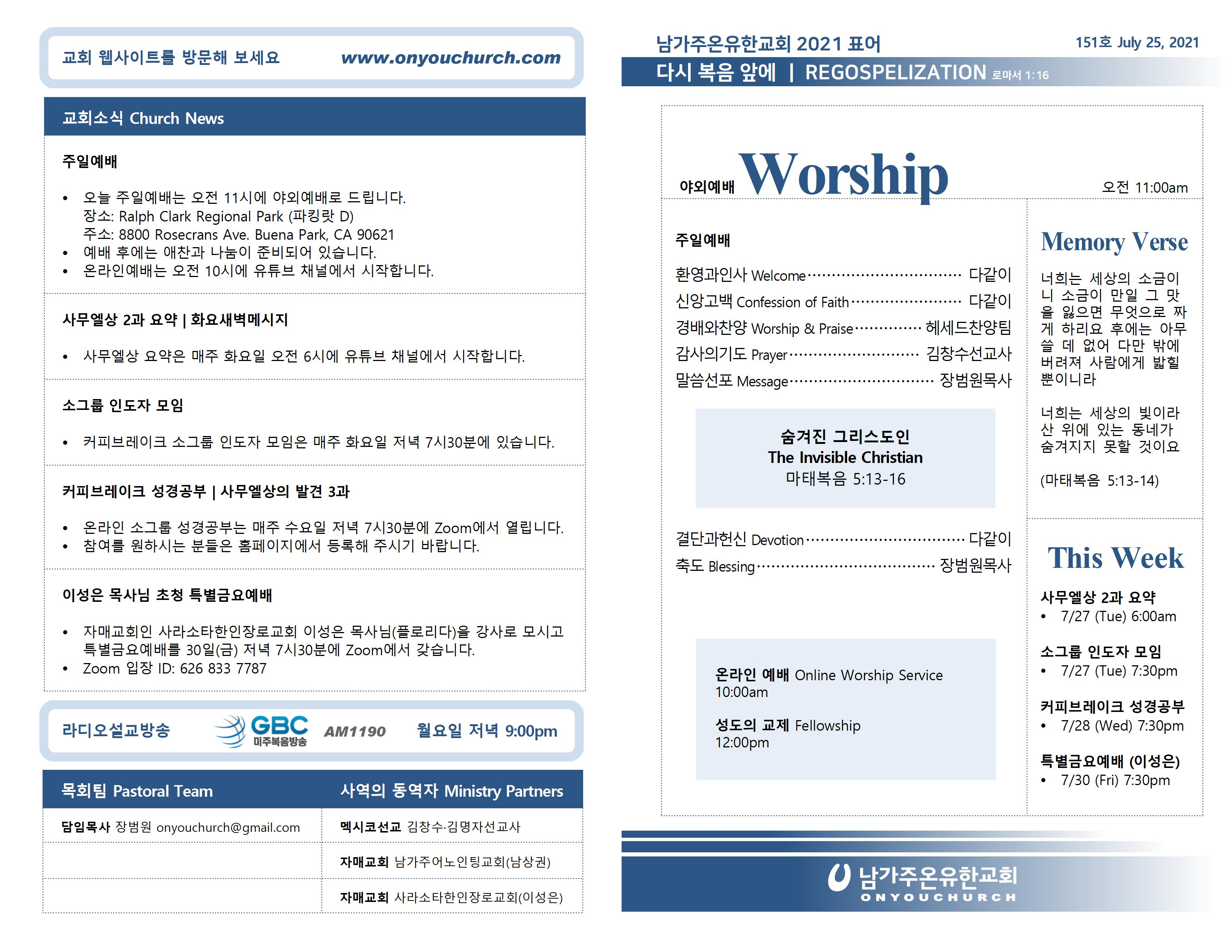 2021년 7월 25일 온라인 주보