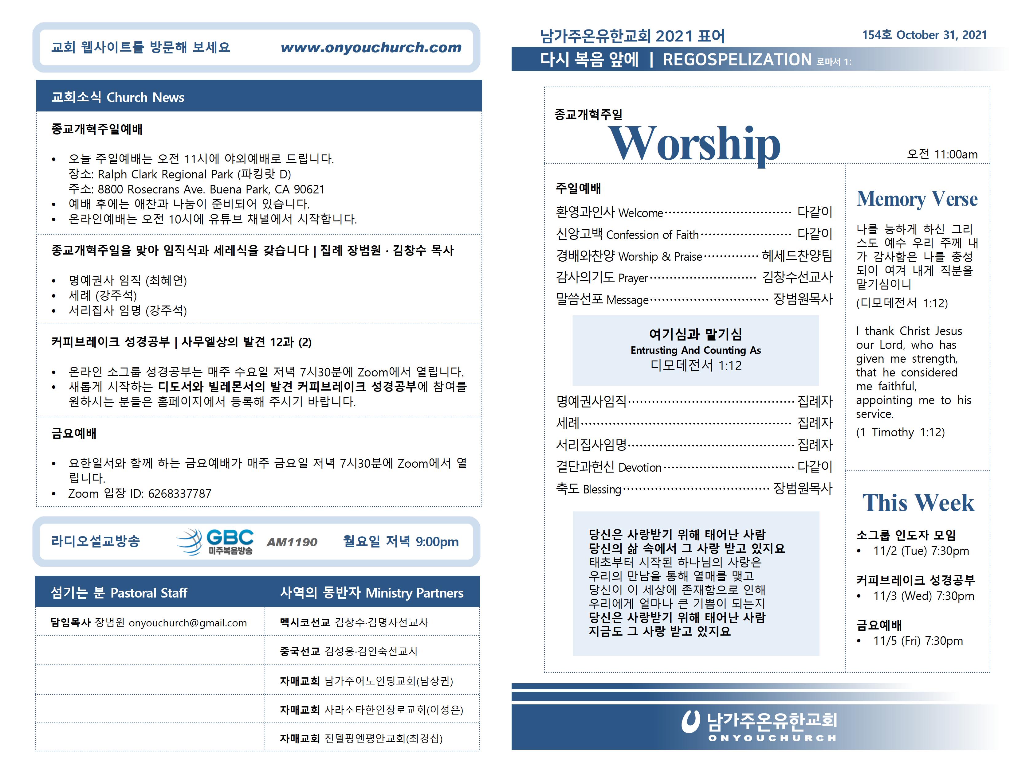 2021년 10월 31일 온라인 주보
