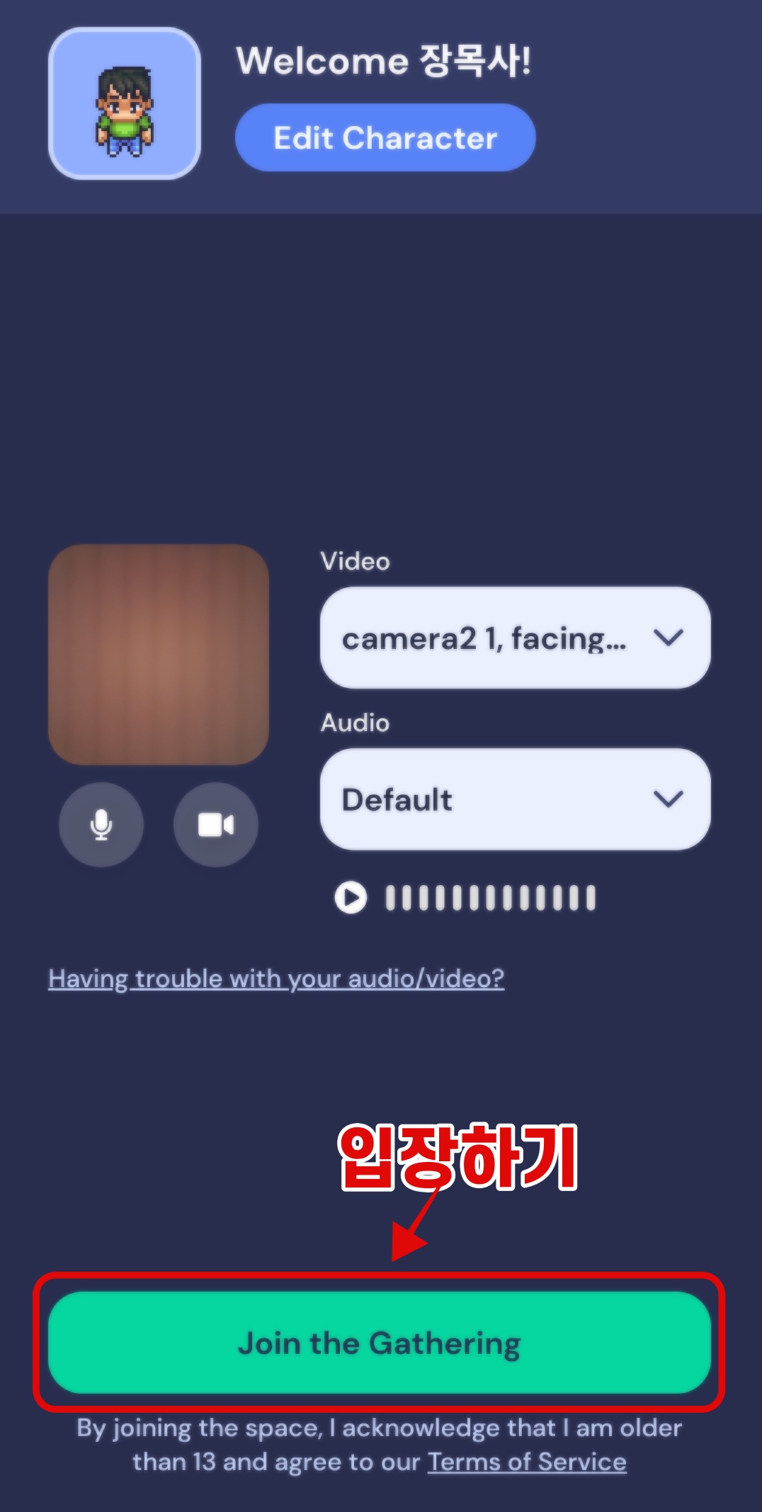 이제 하단에 있는 버튼을 누르시면 입장하실 수 있습니다.