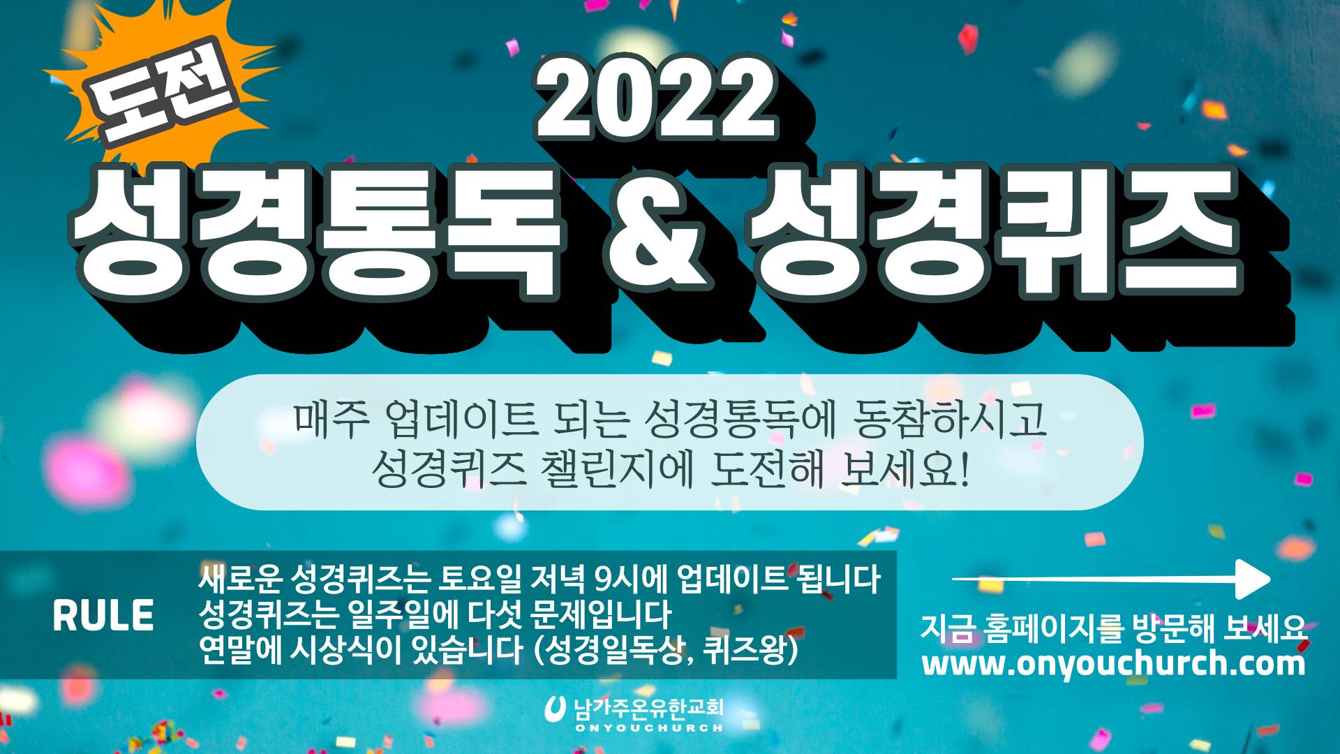 "매주 업데이트 되는 성경통독에 동참하시고 성경퀴즈 챌린지에 도전해 보세요!"