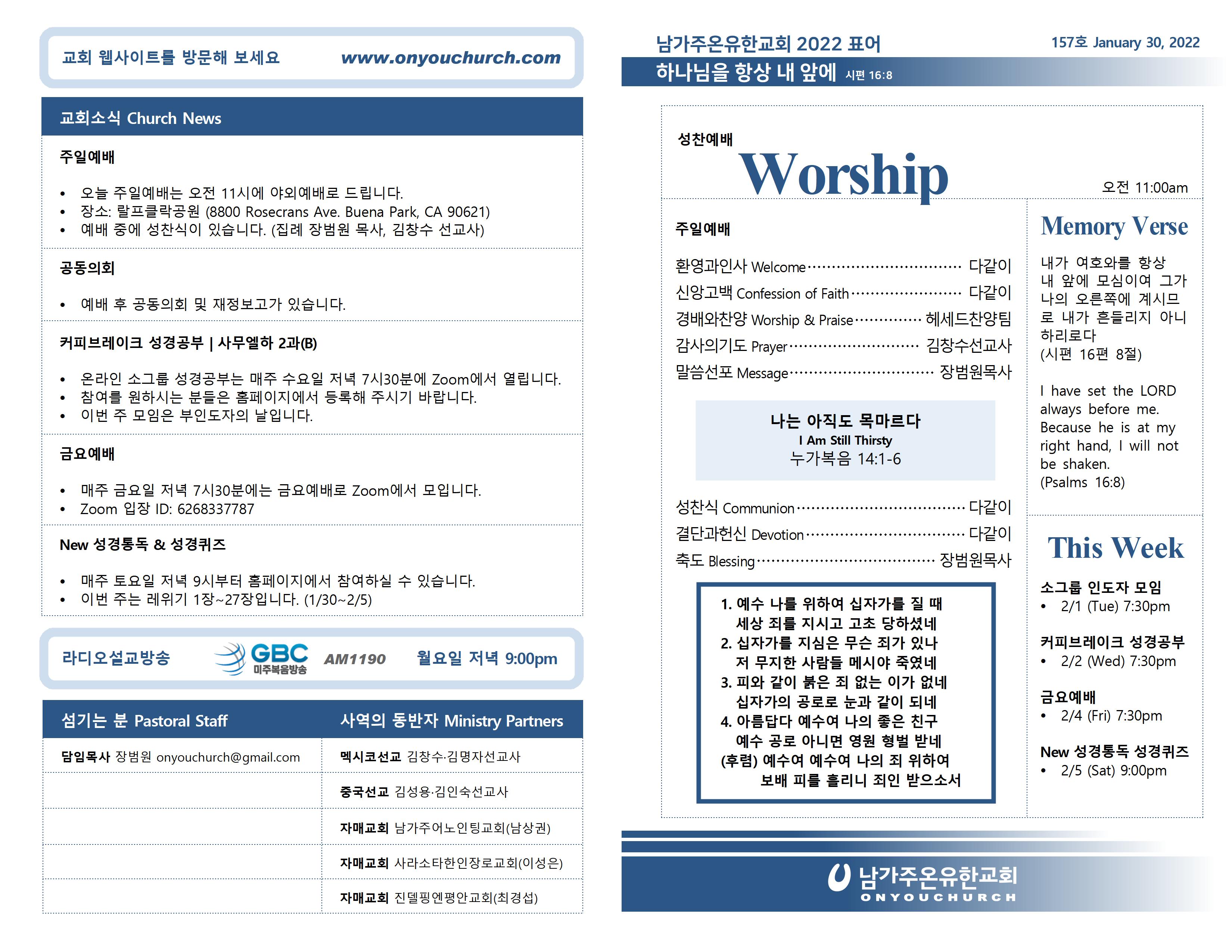 2022년 1월 30일 온라인 주보