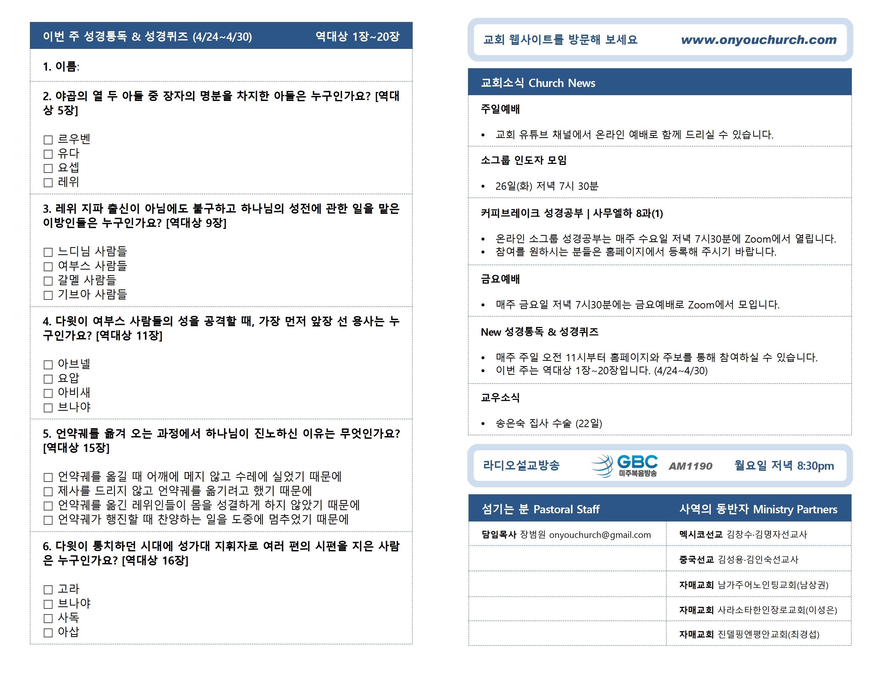 2022년 4월 24일 온라인 주보