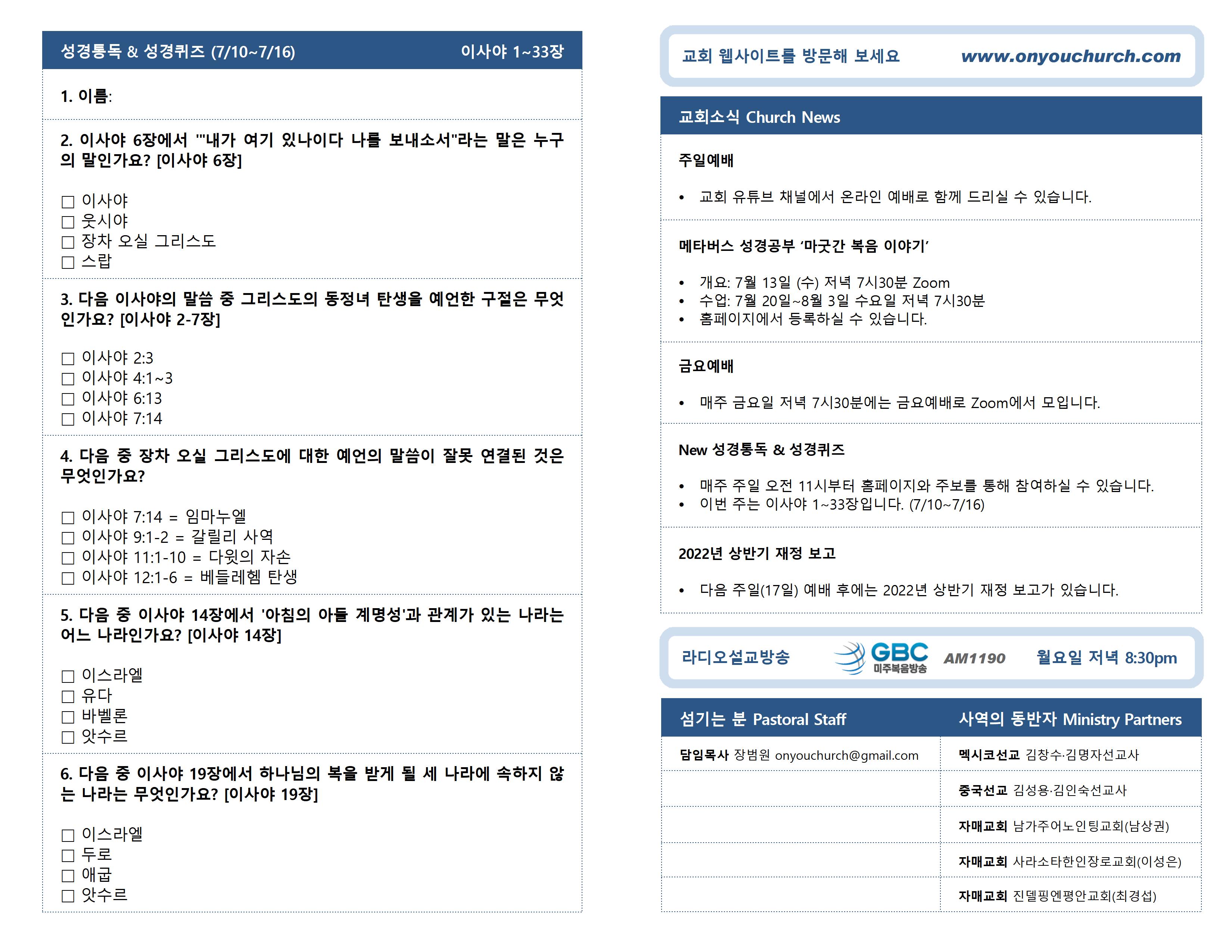 2022년 7월 10일 온라인 주보