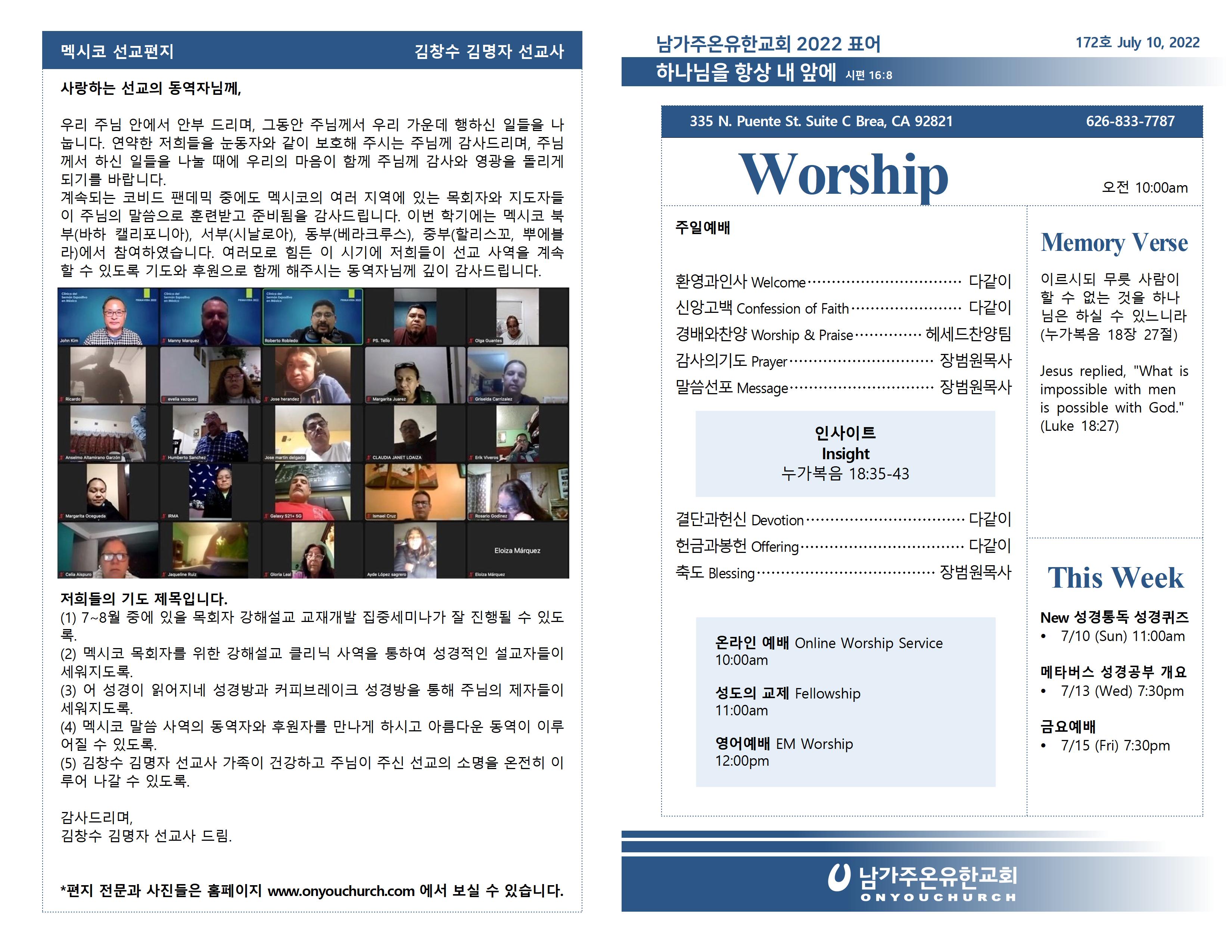 2022년 7월 10일 온라인 주보