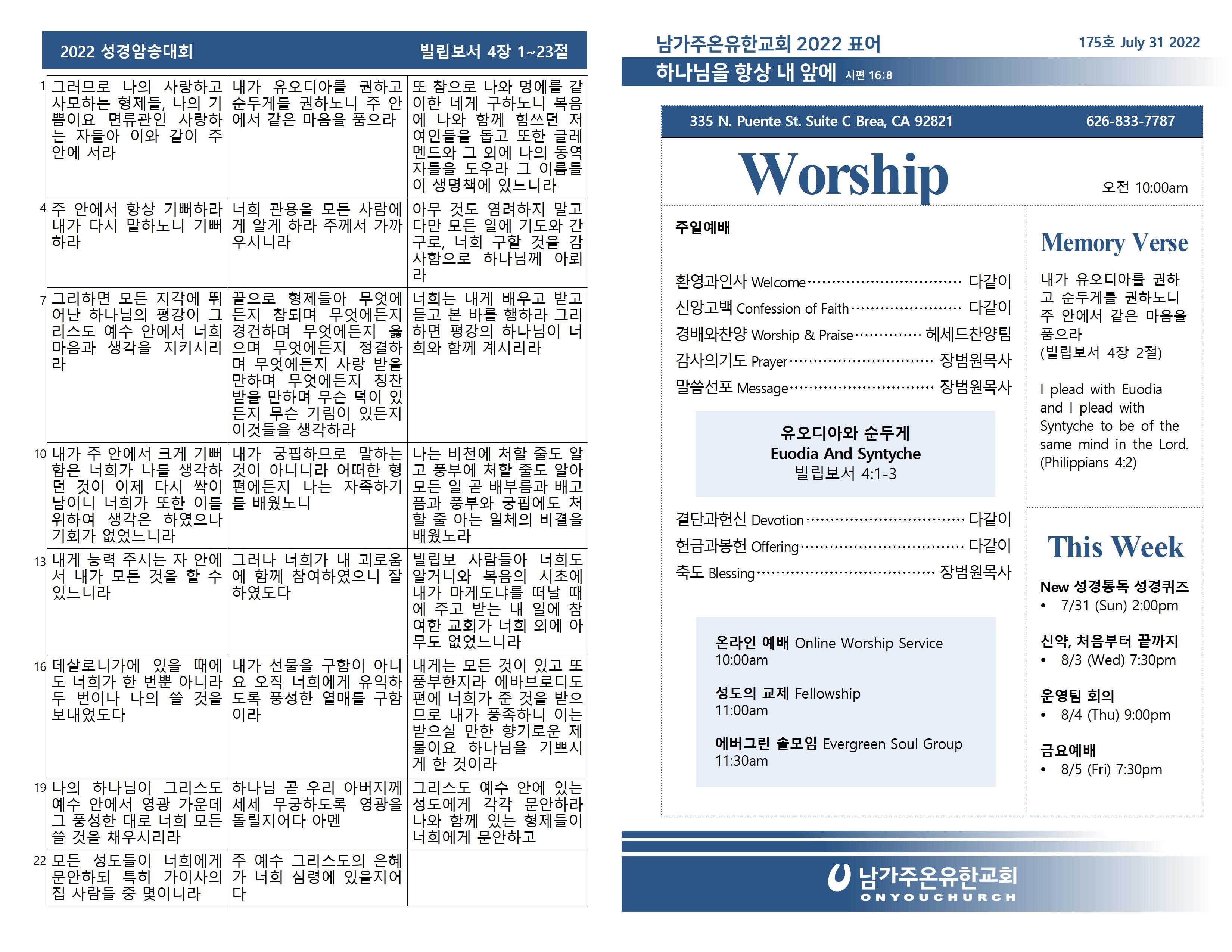 • 2022년 8월 7일 온라인 주보