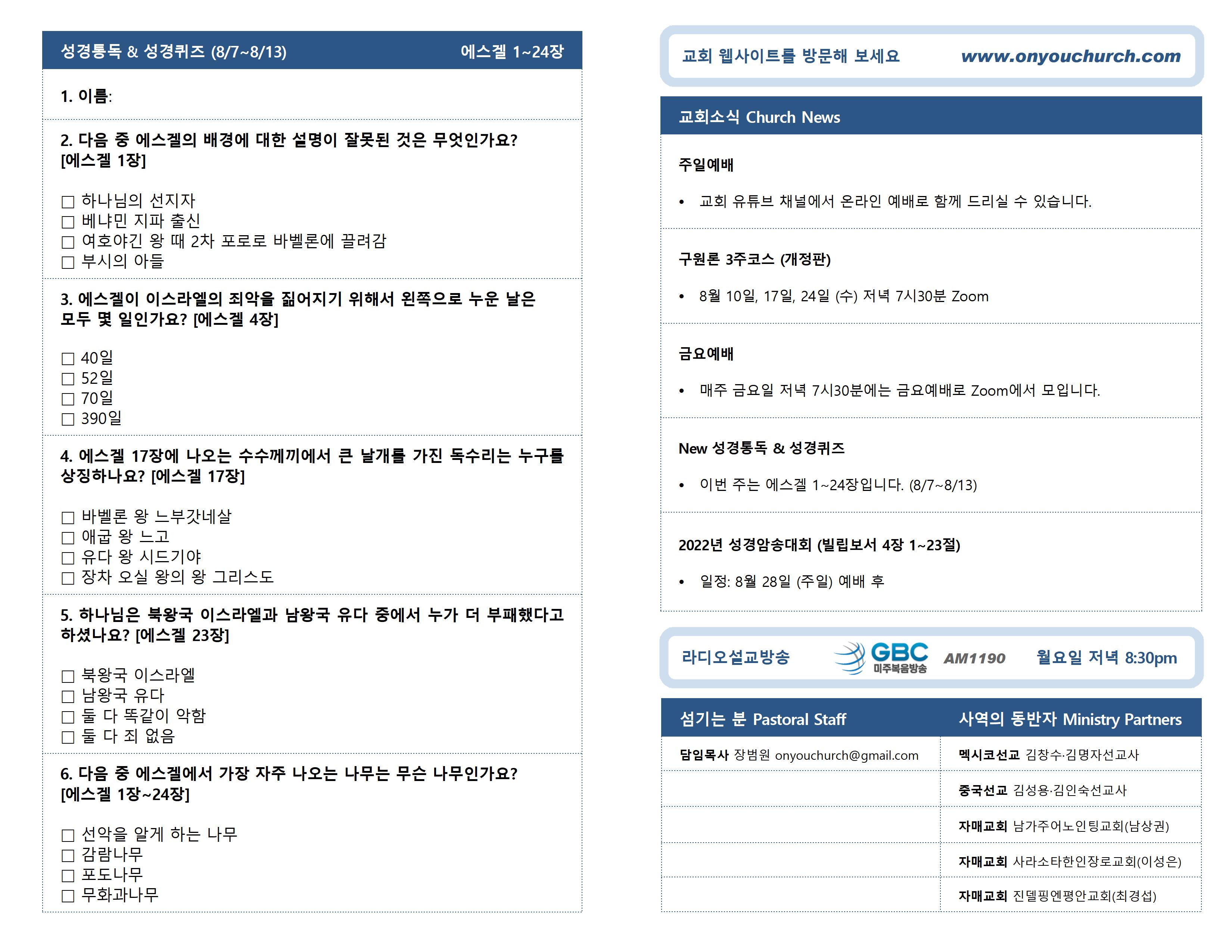 ◼이번 주는 에스겔 1~24장입니다. (8/7~8/13)