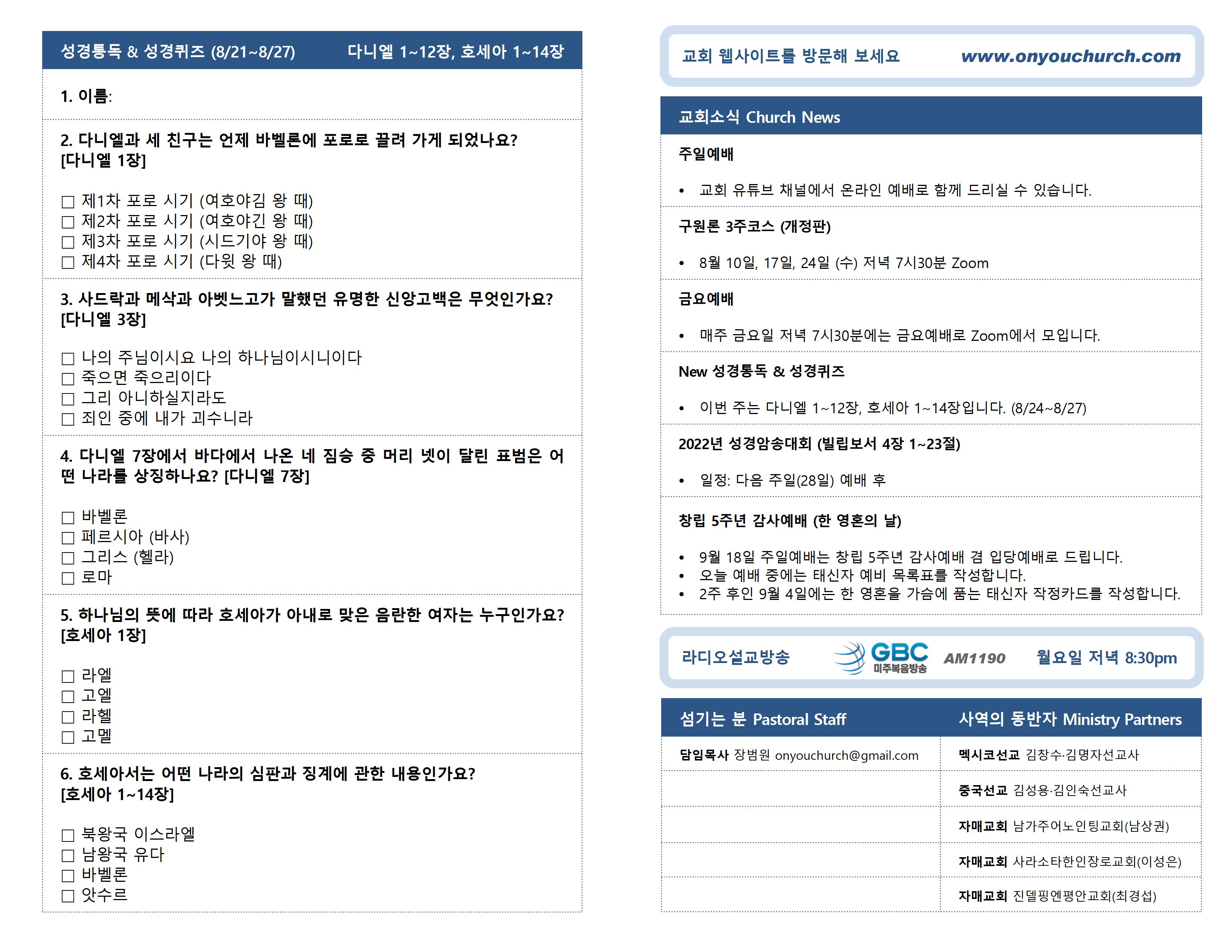 2022년 8월 21일 온라인 주보