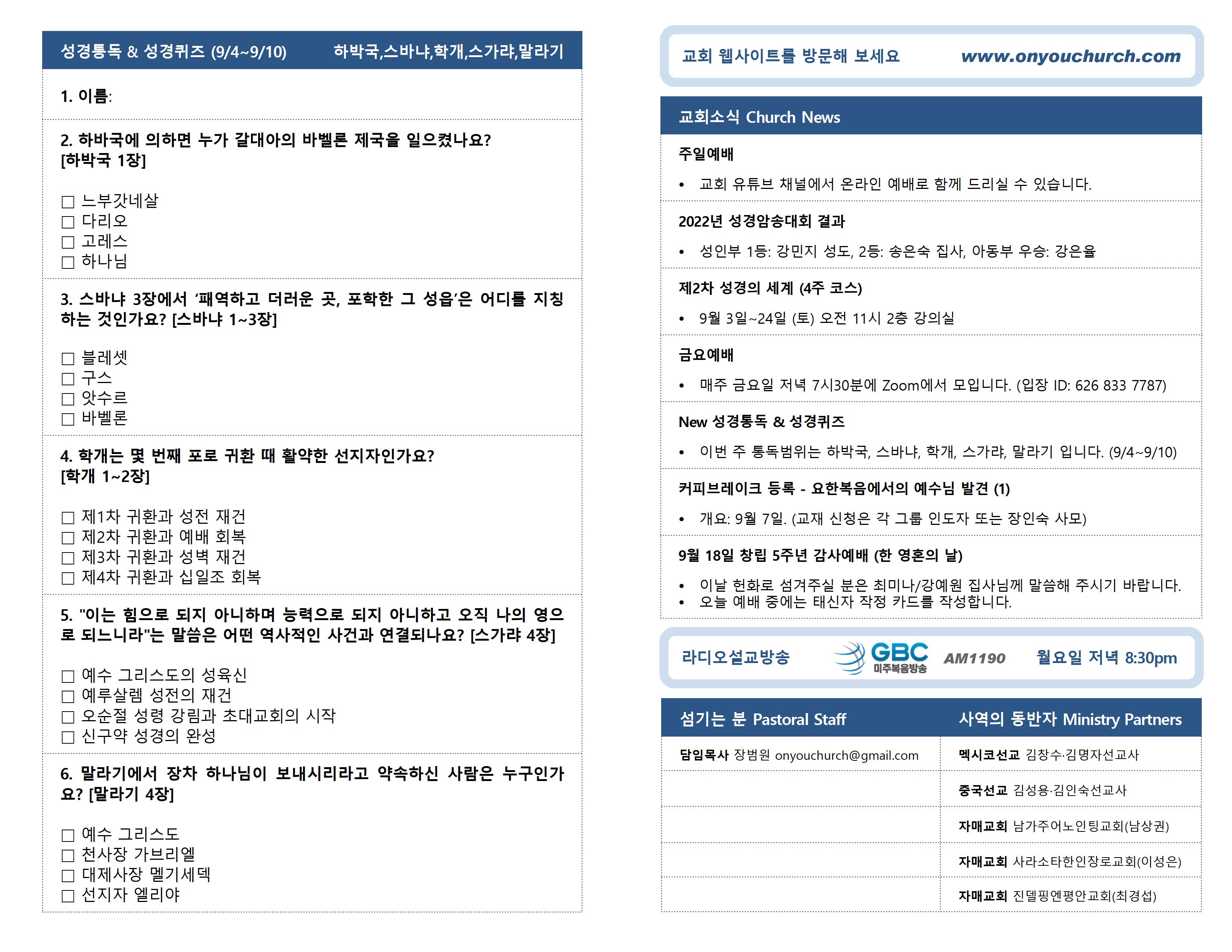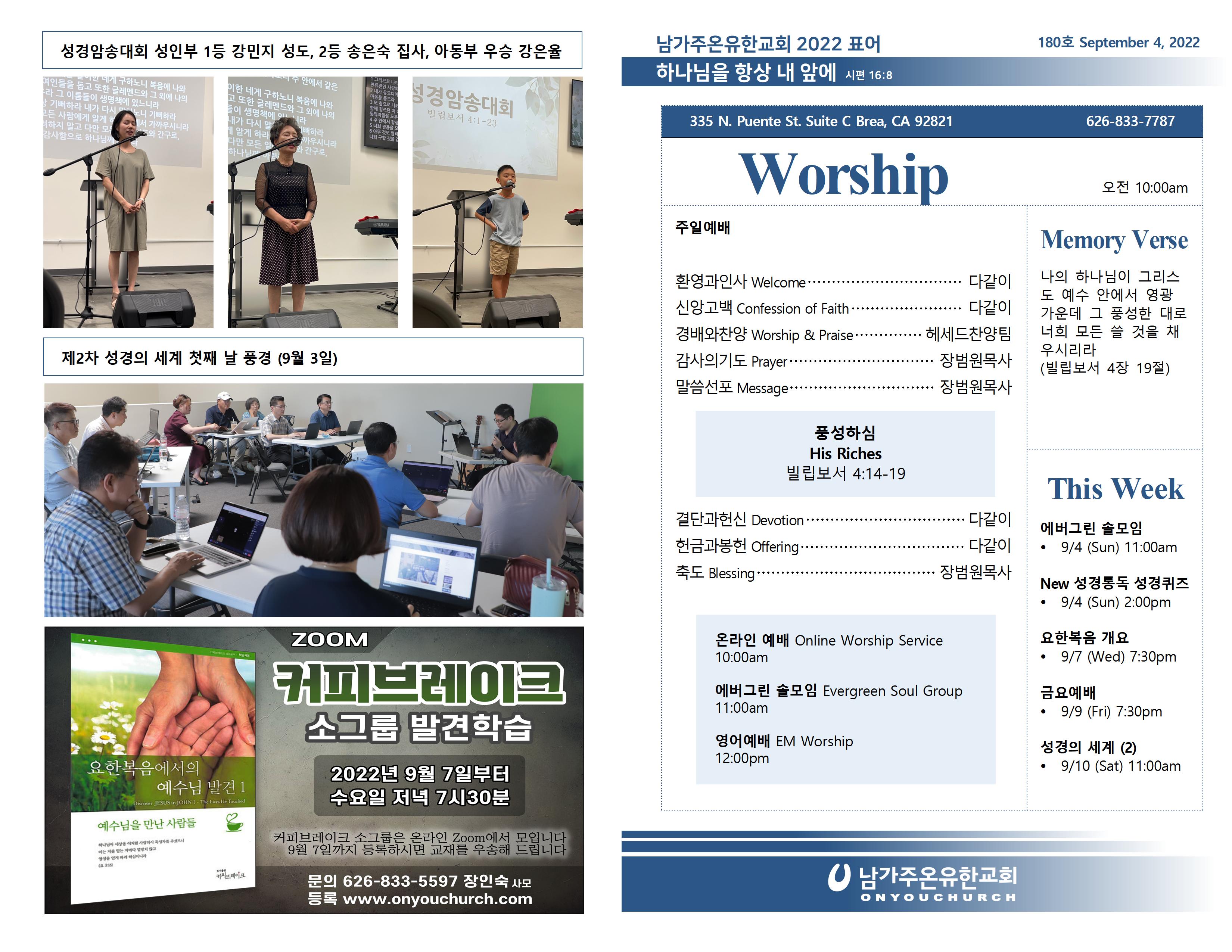 2022년 9월 4일 온라인 주보