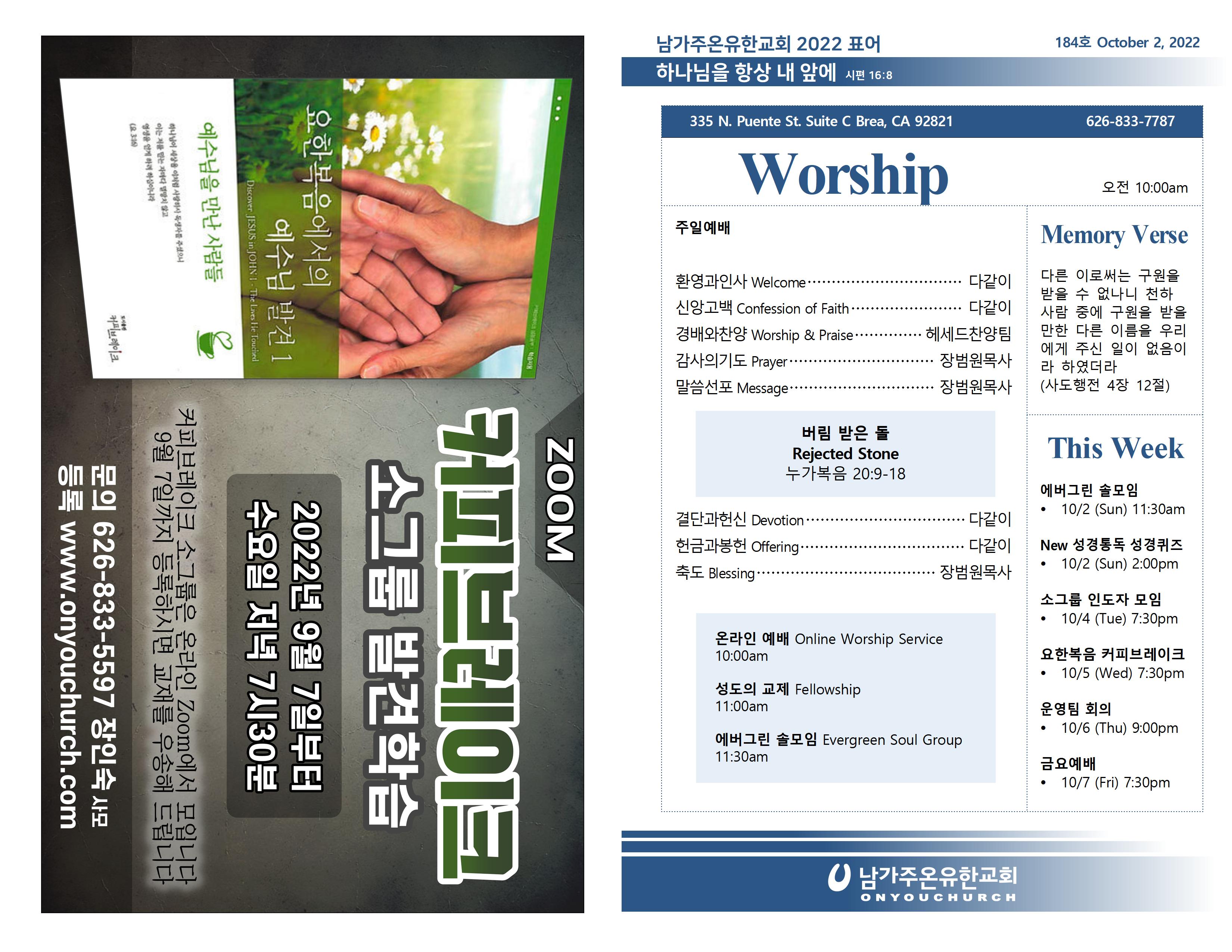 2022년 10월 2일 온라인 주보