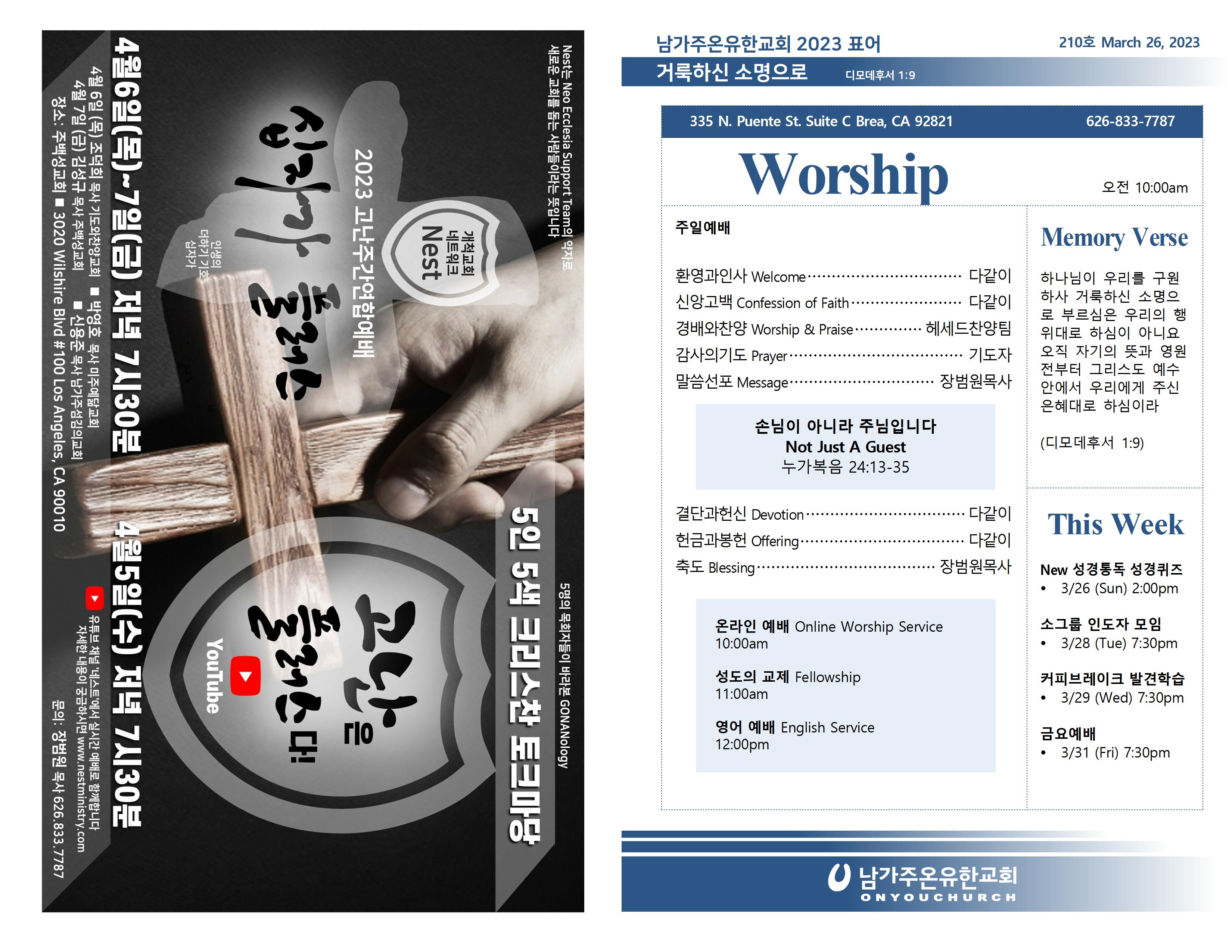 ◼4월 7일(금) 고난주간연합예배 - 김성규 목사 (주백성교회), 신용준 목사 (남가주섬김의교회)