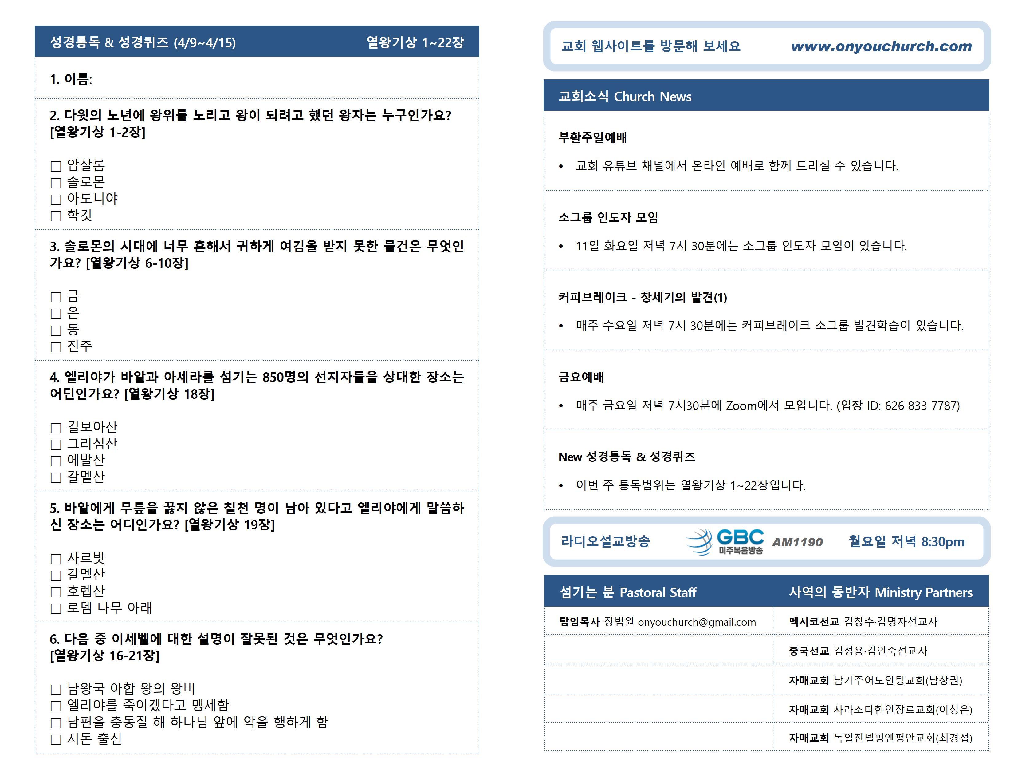 • 성경통독 & 성경퀴즈