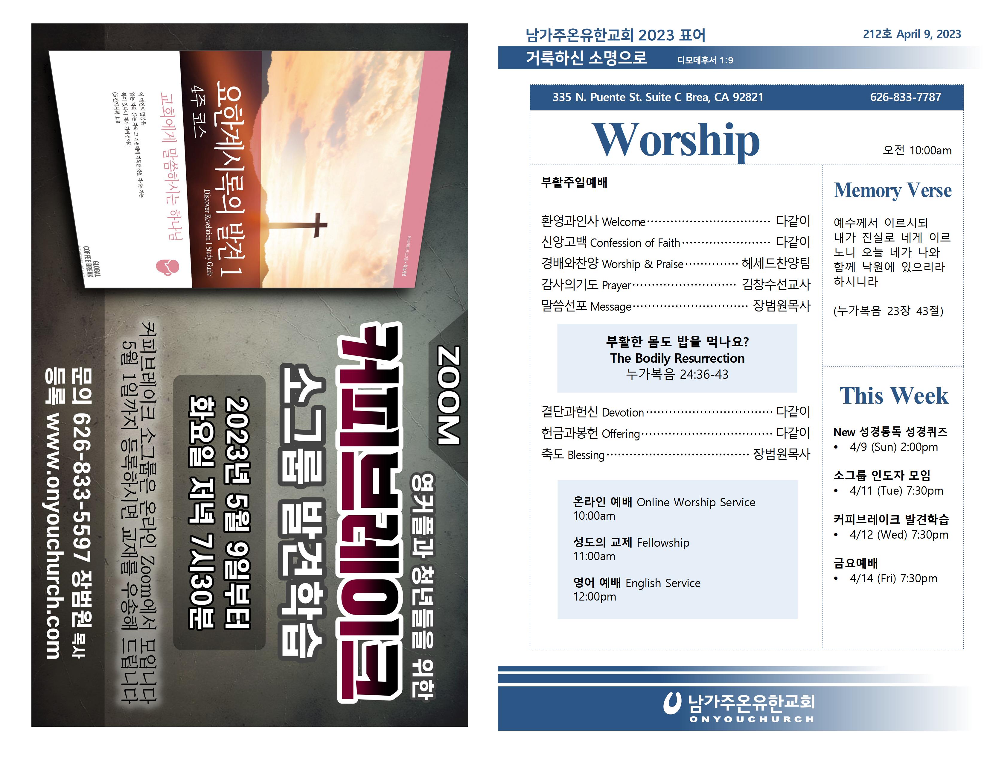 ◼11일 화요일 저녁 7시30분에는 소그룹 인도자 모임이 있습니다.