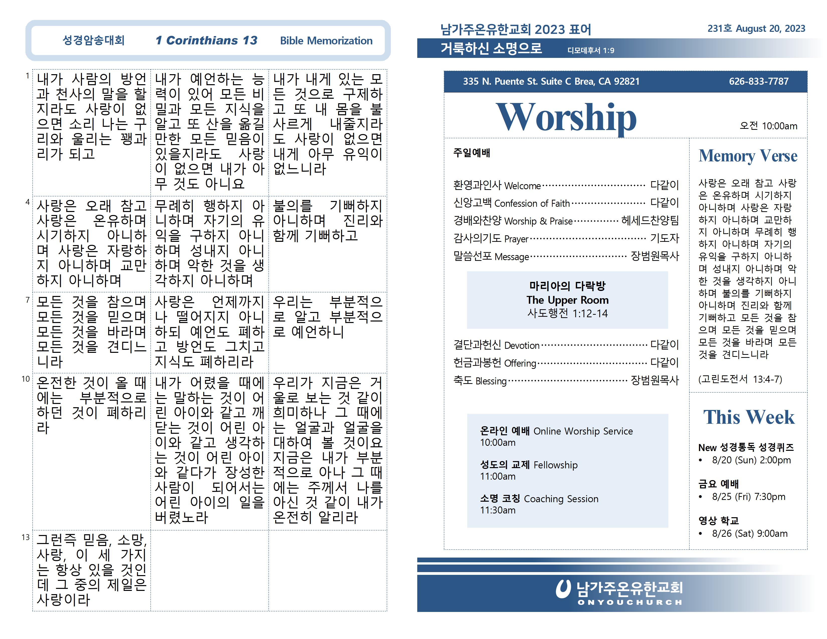 ◼다음 주일 (27일) 주일 예배 후에는 성경 암송 대회가 열립니다.