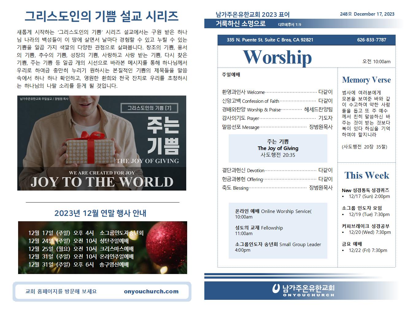 ◼ 다음 주일에는 성경 통독과 성경 퀴즈 시상식이 있습니다.
