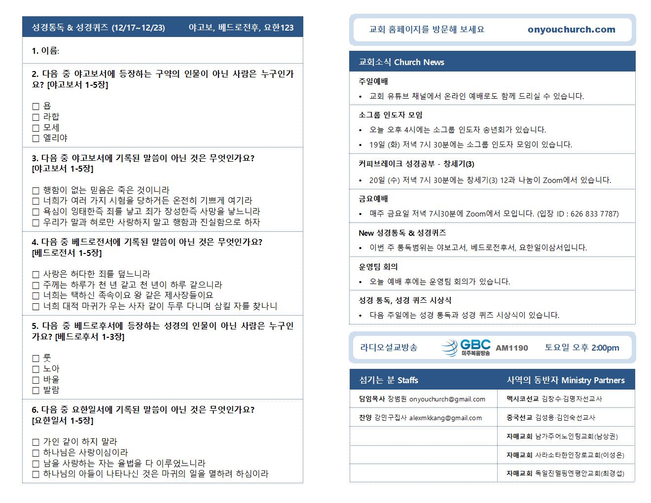 • 성경통독 & 성경퀴즈
