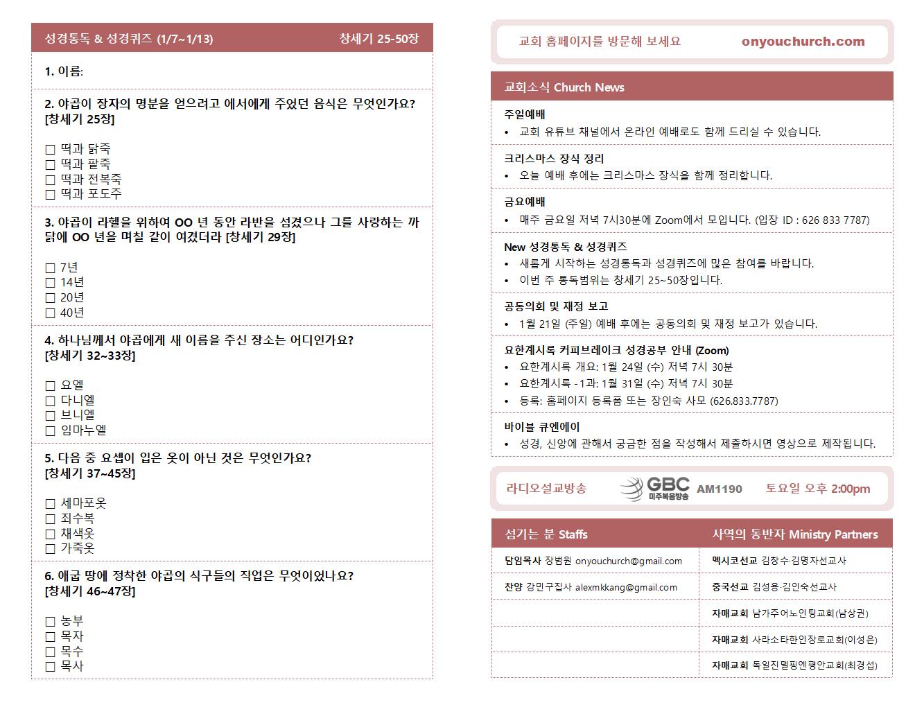 ◼ 새롭게 시작하는 성경통독과 성경퀴즈에 많은 참여를 바랍니다.