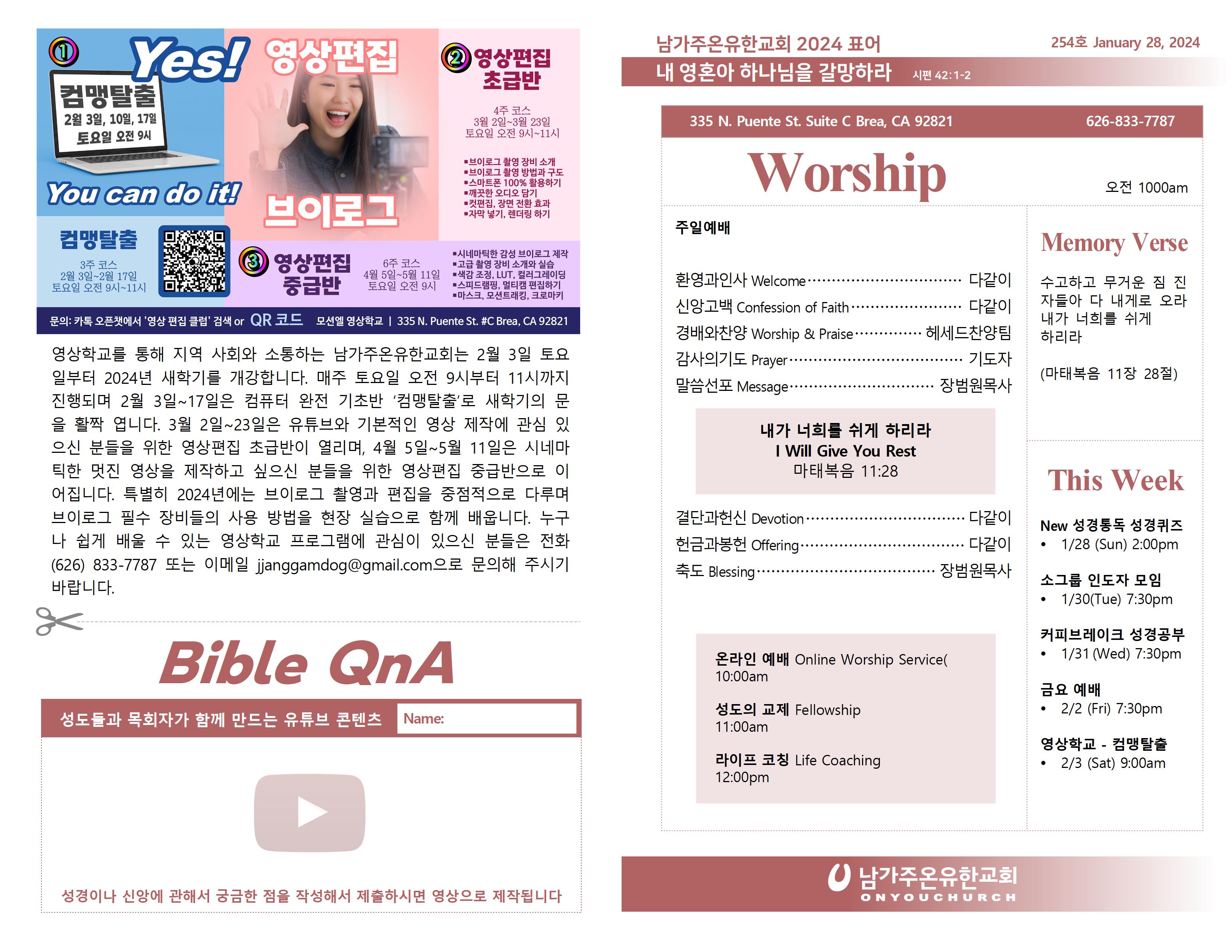 ◼ 다음 주일 (4일) 오후 4시에는 2024 사역을 위한 각급 팀장 모임이 있습니다.