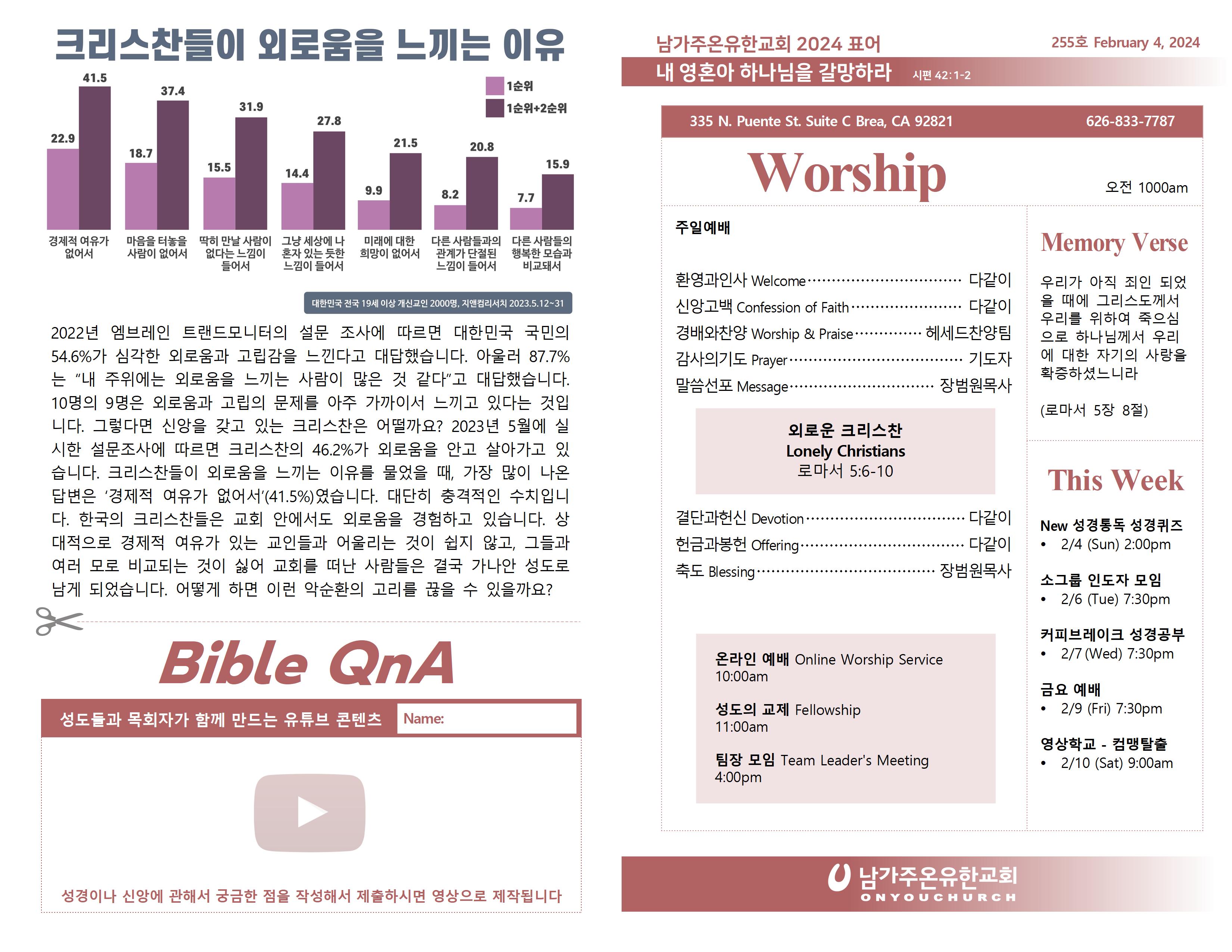 ◼ 새롭게 시작하는 성경통독과 성경퀴즈에 많은 참여를 바랍니다.