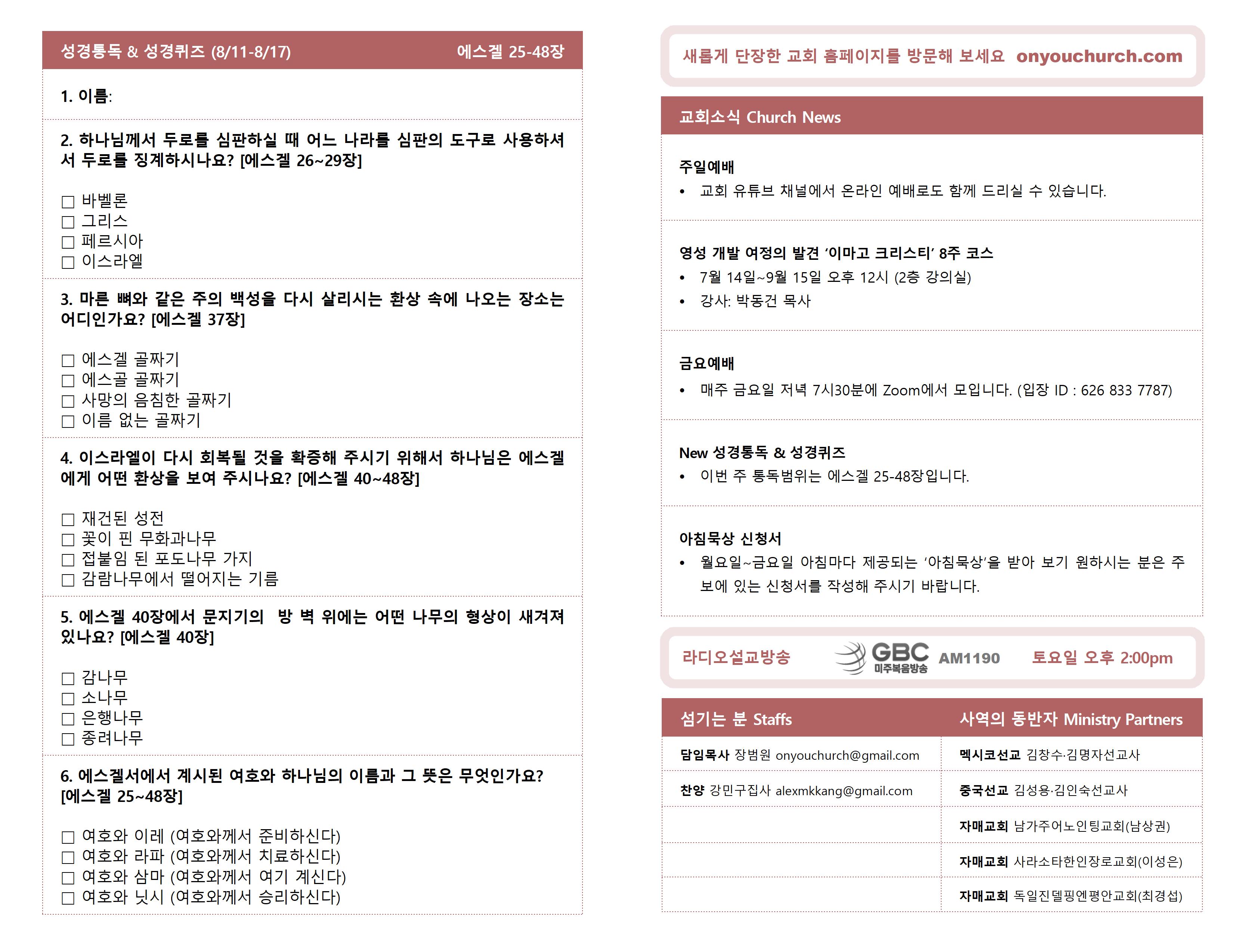 ◼ 이번 주 통독범위는 에스겔 25-48장입니다.