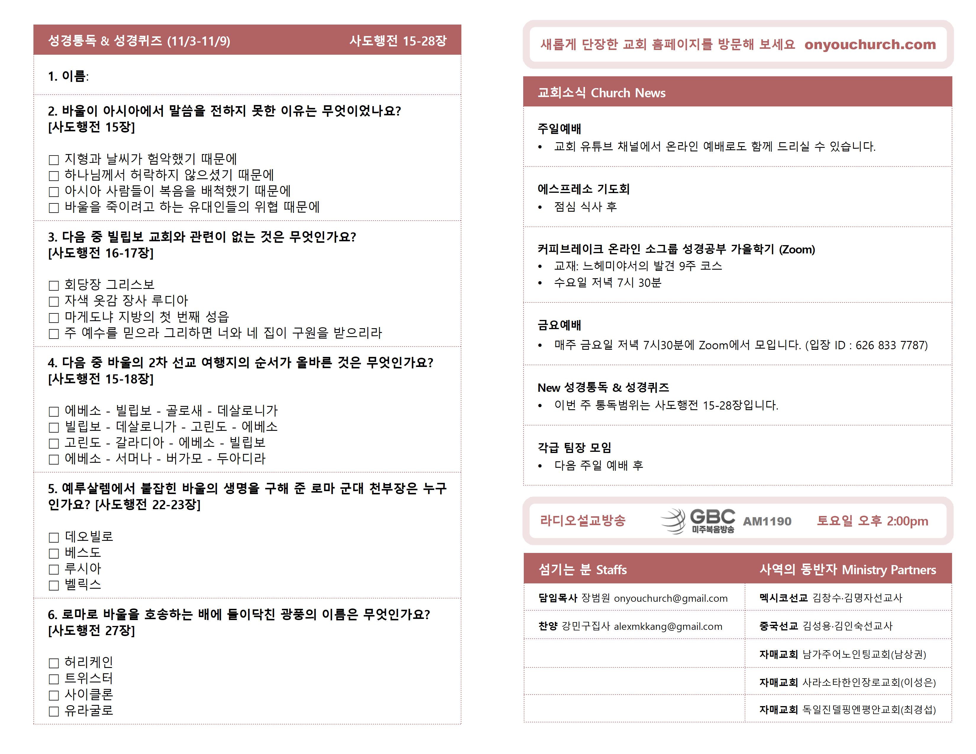 ◼ 이번 주 통독범위는 사도행전 15-28장입니다.
