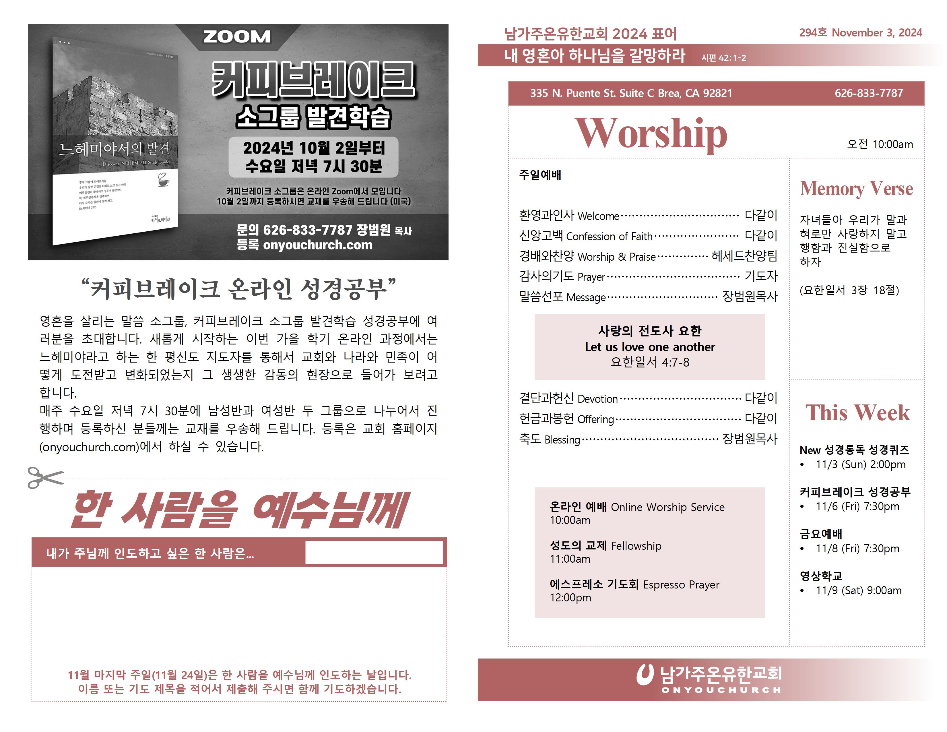 3. 커피브레이크 온라인 소그룹 성경공부 가을학기 (Zoom)