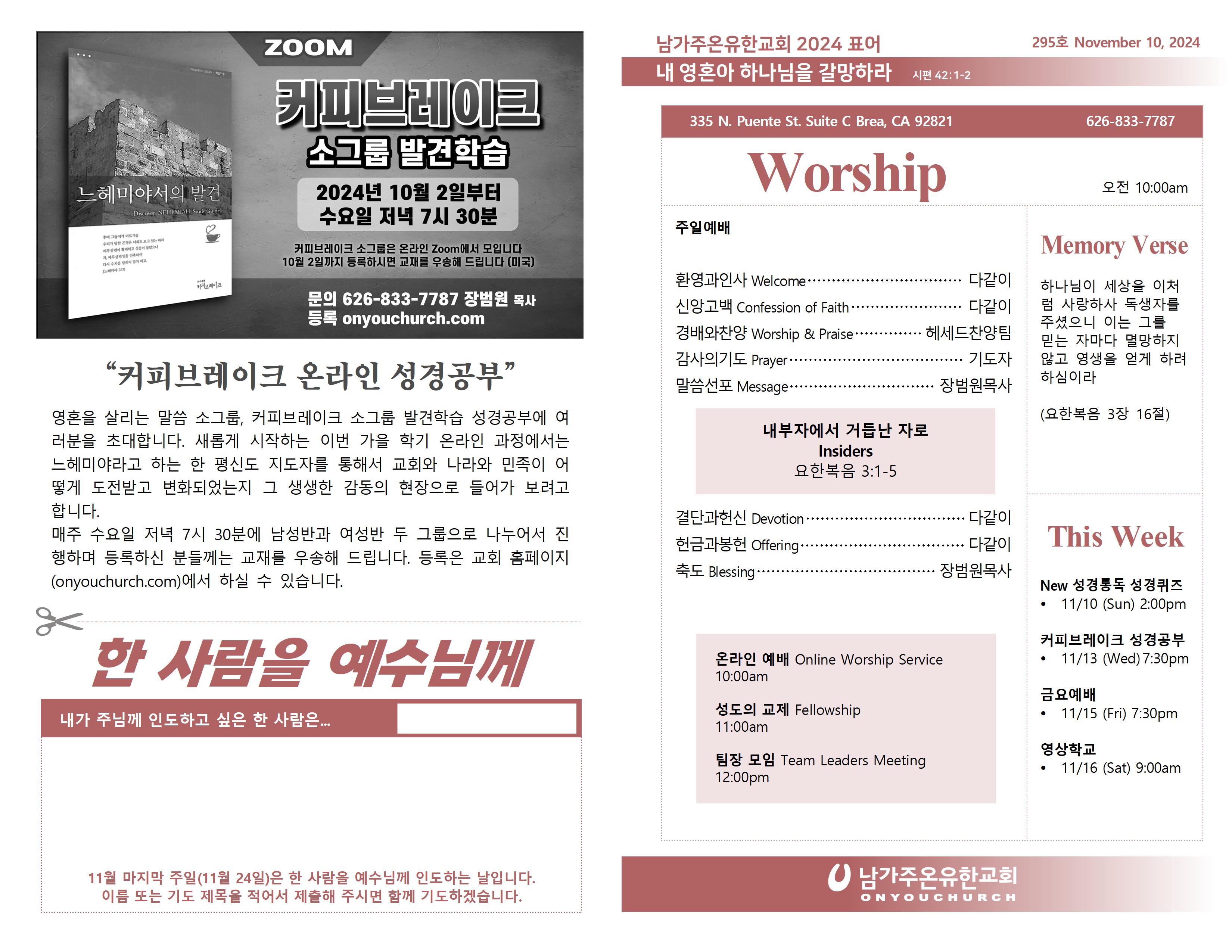3. 커피브레이크 온라인 소그룹 성경공부 가을학기 (Zoom)