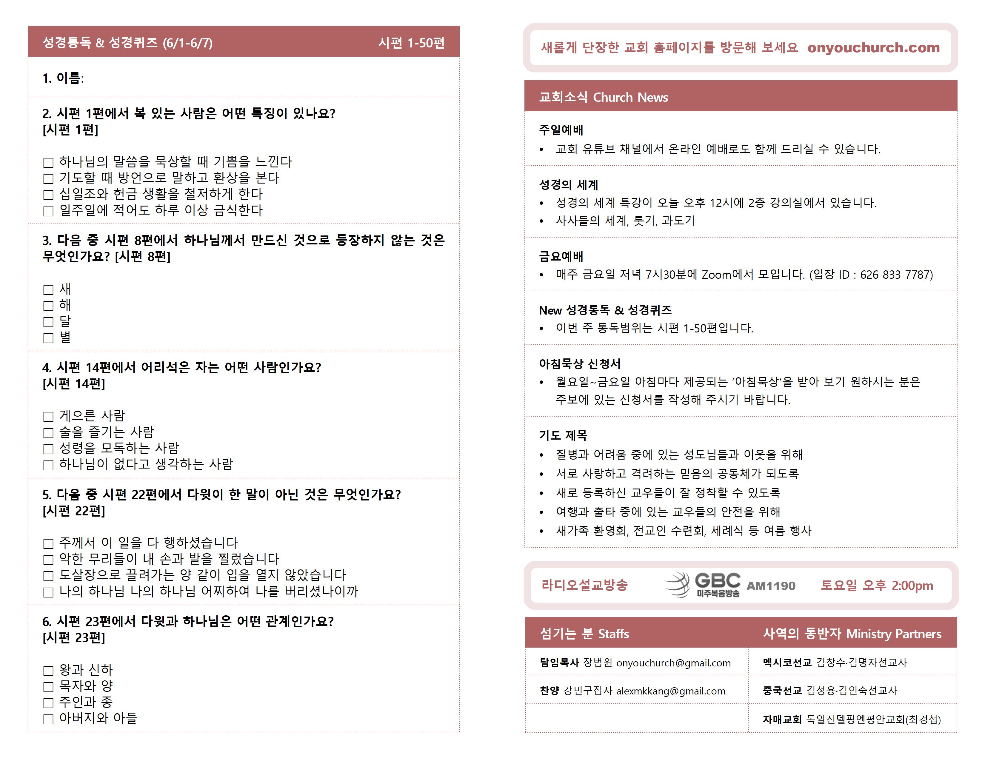 ◼ 이번 주 통독범위는 시편 1-50편입니다.