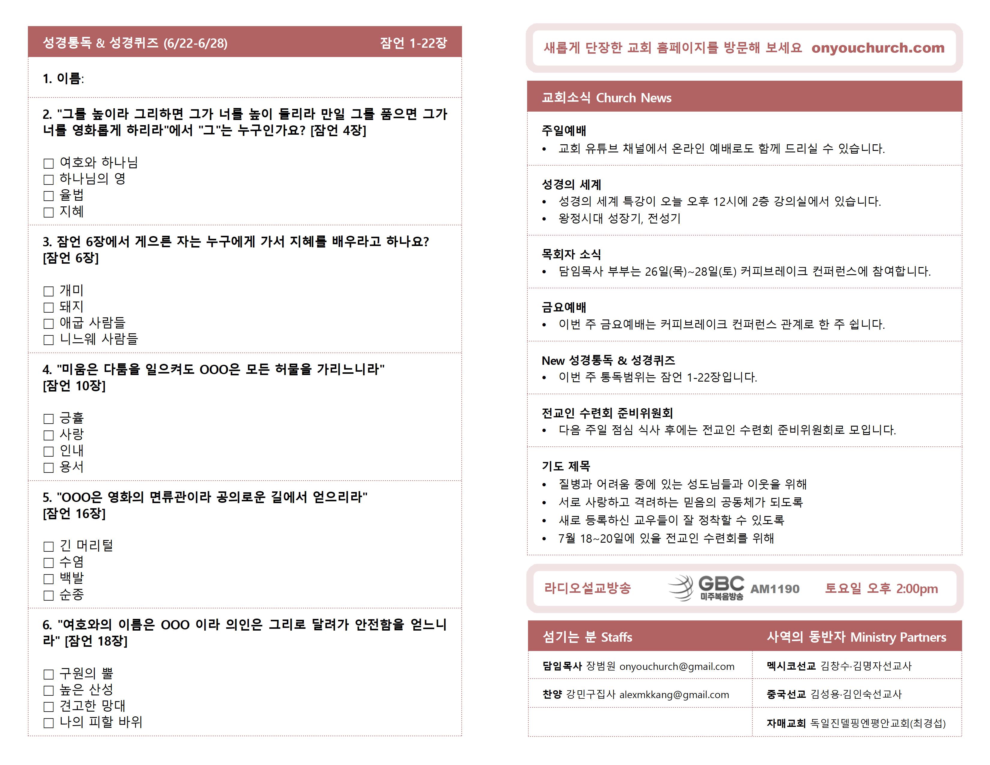 ◼ 이번 주 통독범위는 잠언 1-22장입니다.
