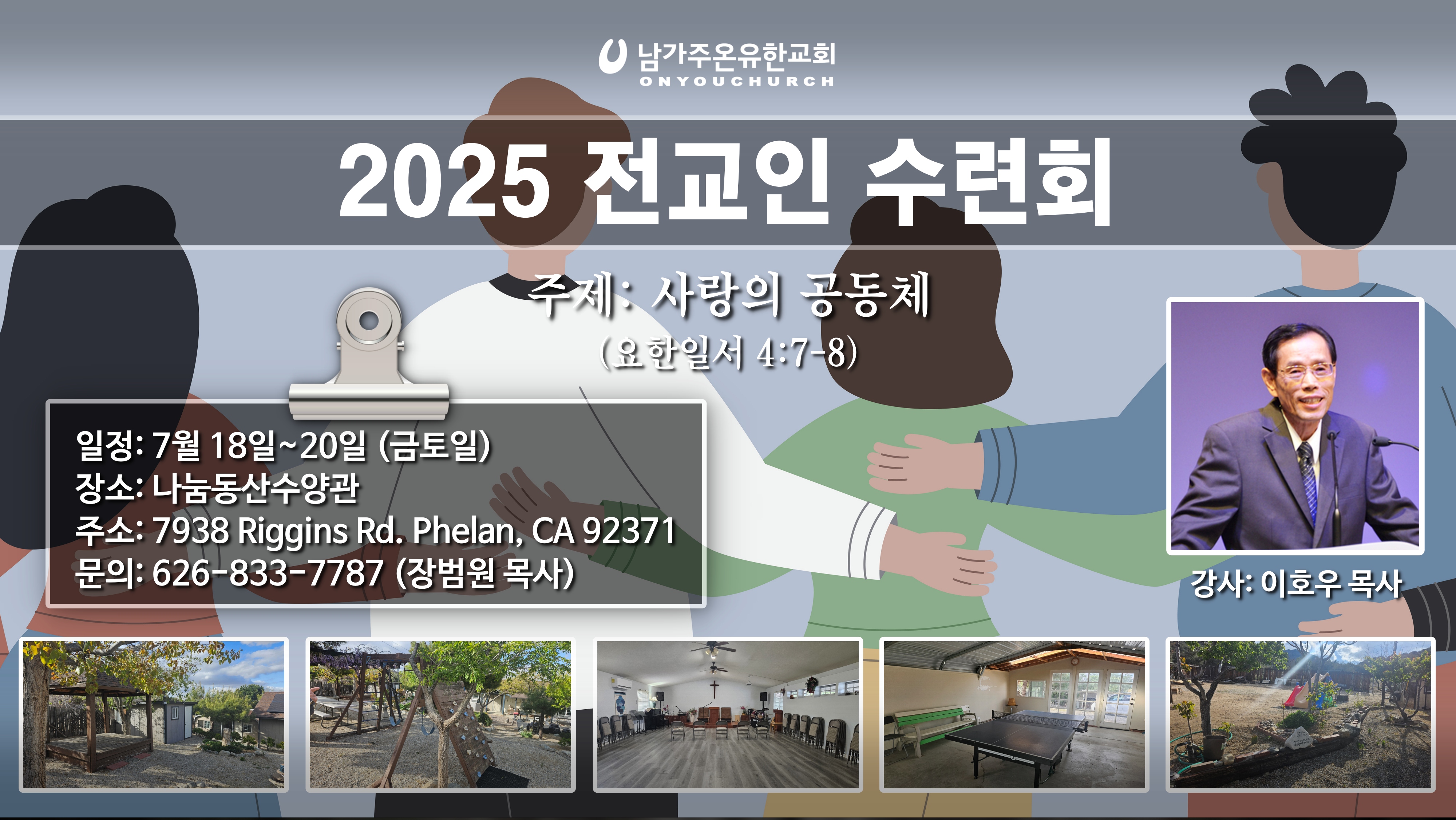 ▶주소: 7938 Riggins Rd. Phelan, CA 92371 (나눔동산수양관)