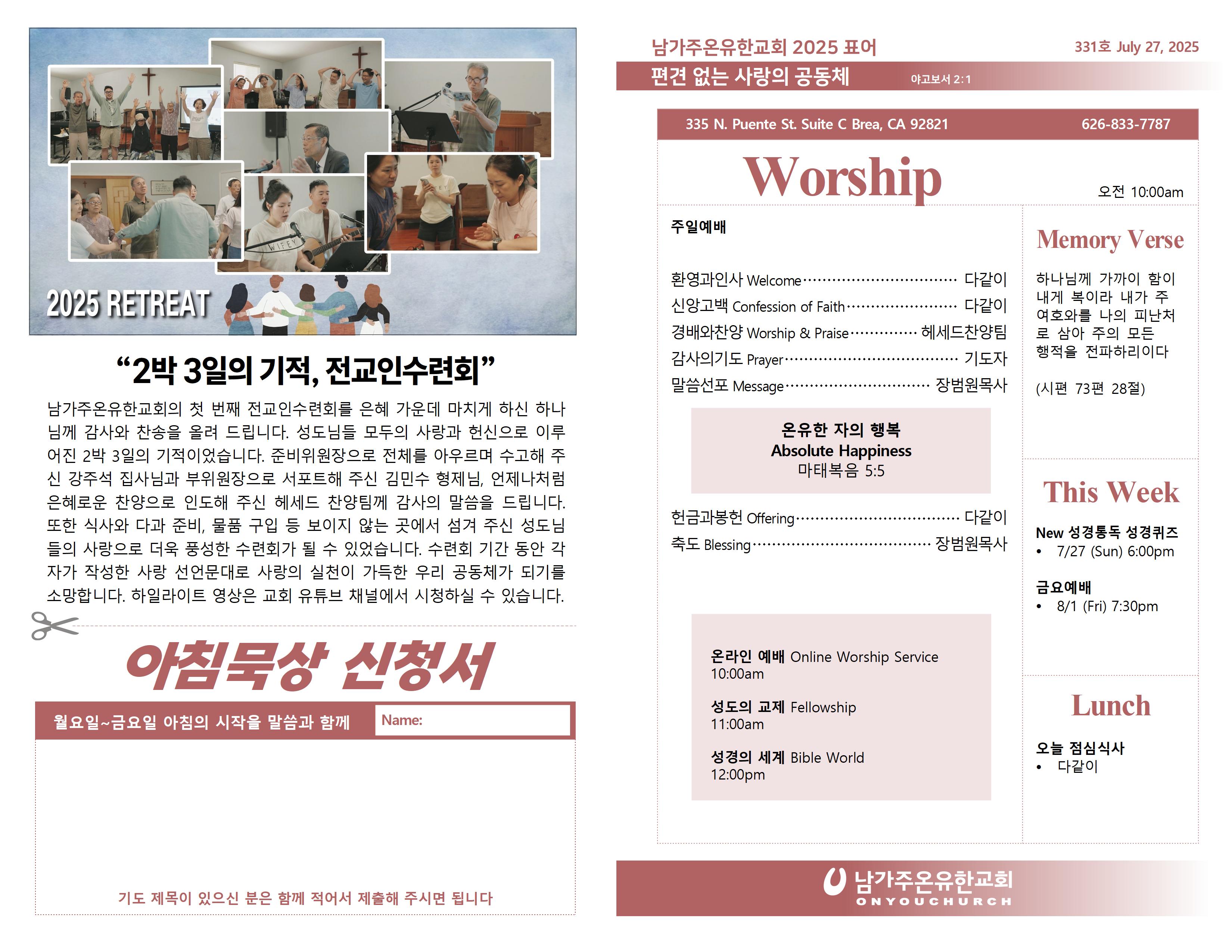 ◼ 교회 유튜브 채널에서 온라인 예배로도 함께 드리실 수 있습니다.