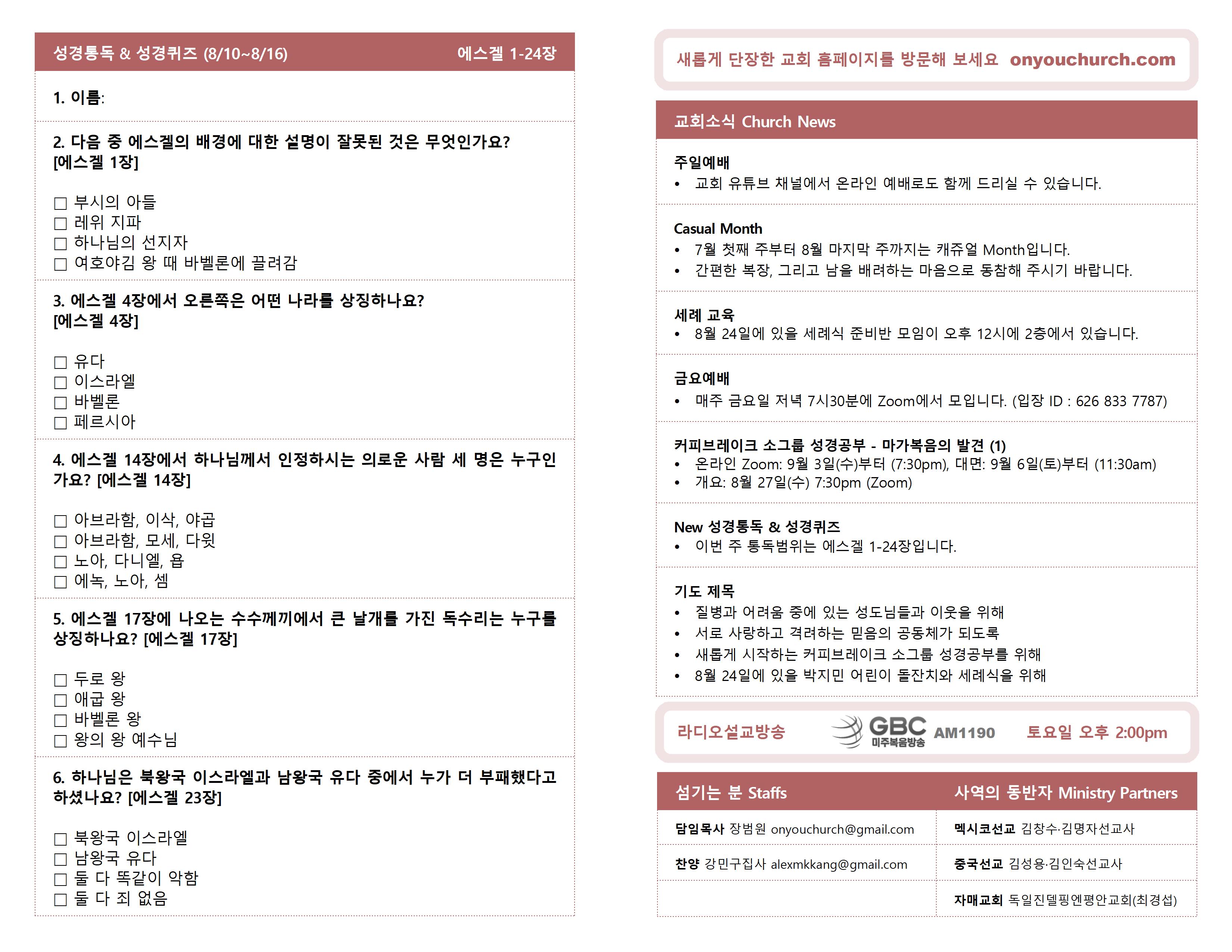◼ 이번 주 통독범위는 에스겔 1-24장입니다.