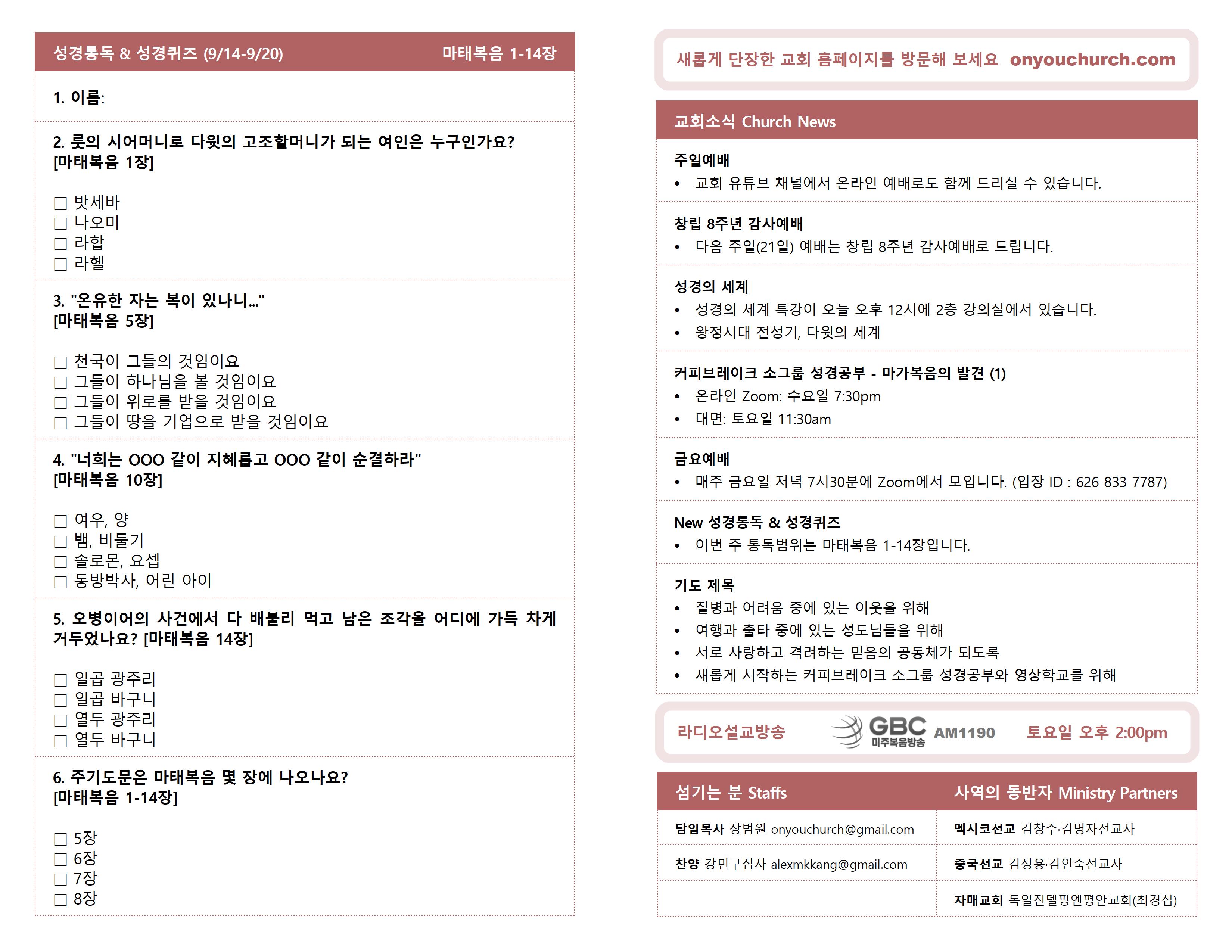 2025년 9월 14일 주보