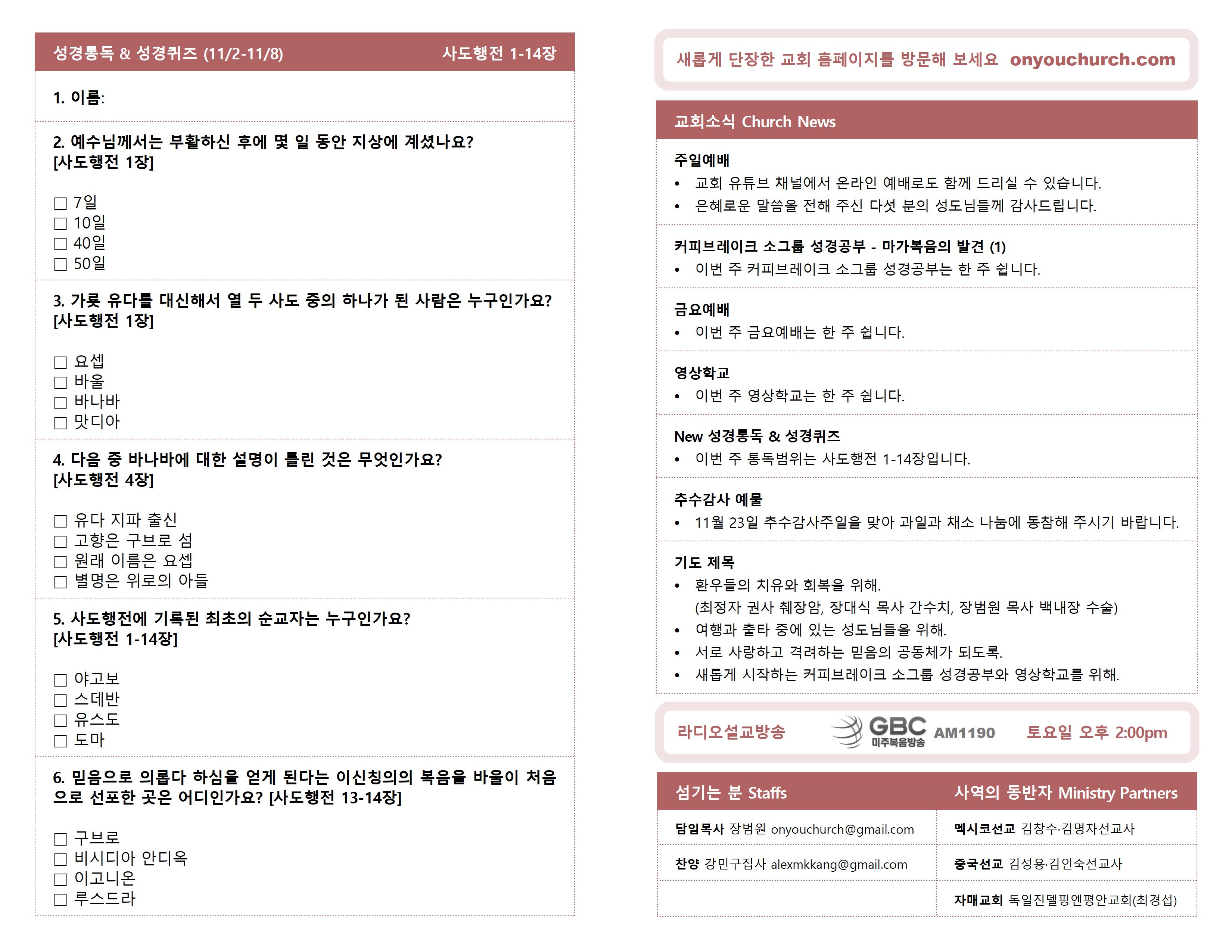 ◼ 이번 주 통독범위는 사도행전 1-14장입니다.