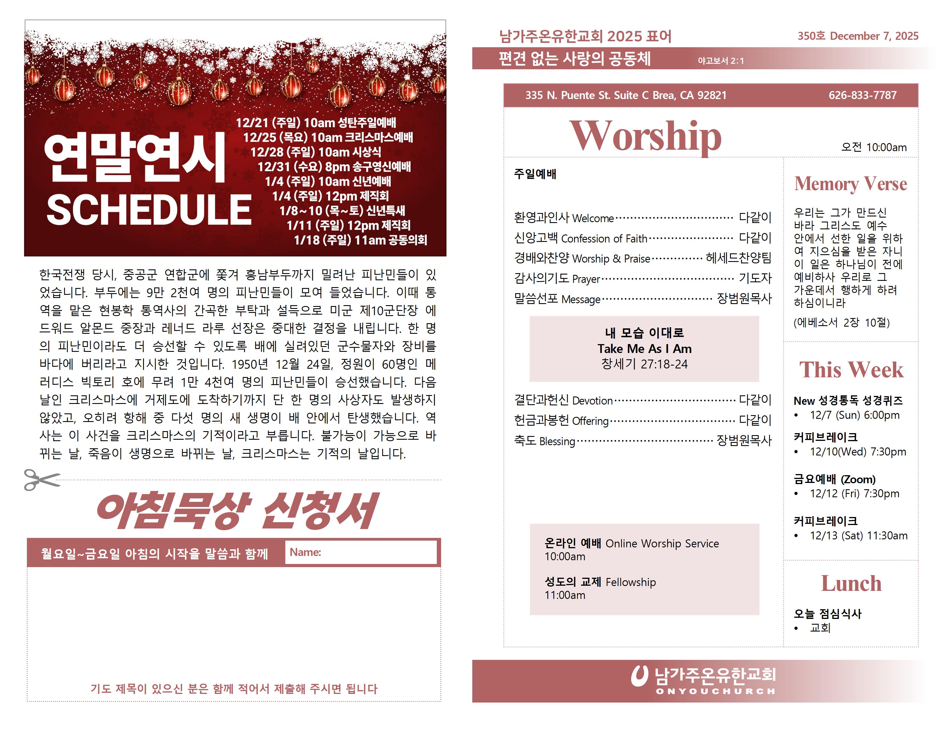 ◼ 개원 감사예배: 다음 주일 (14일) 오후 2시